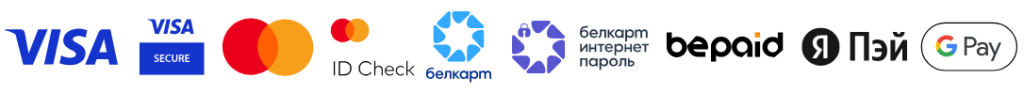 Мы принимаем платежи по следующим банковским картам: Visa, Visa Electron, MasterCard, Maestro, Белкарт